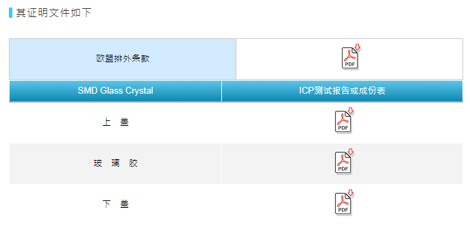 7A/AA(5.0x3.2mm),6X/AX(8.0x4.5mm),7V(3.2x2.5mm),7Y(5.0x3.2xmm) 7S(2.5x2.0mm)系列,因使用含铅的玻璃作为上下陶瓷材料的封装,故适用排外条款为RoHS(C)-l铅用于电器及电子组件中之玻璃或陶瓷(介电陶瓷电容除外)。例如:压电组件或者玻璃/陶瓷复合材料。