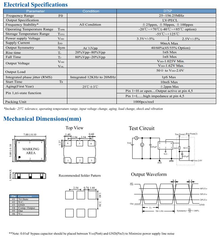 特点:7.0x5.0x1.8mm封装三态功能,低抖动和噪声PECL输出,非常适合光纤通信应用,FTTH和SONET/SDH应用,服务器,FCHBA,光纤通道,千兆以太网和串行ATA。