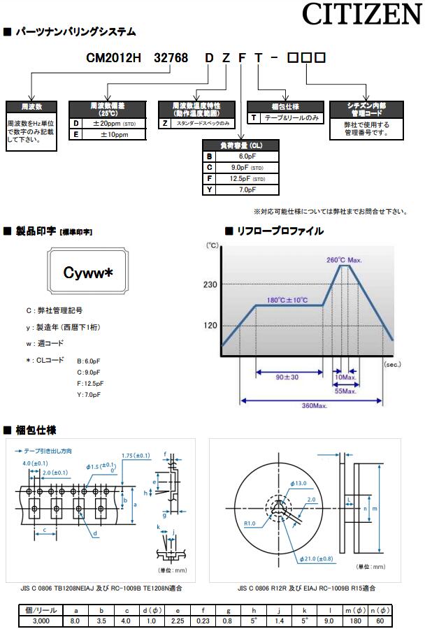 | CM2012H32768DZFT | 32.768KHz | 40°C+85°C | 12.5PF | ±20PPM |
